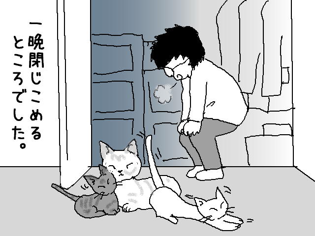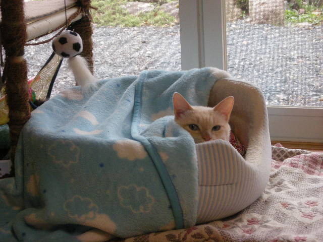 泥だらけで保護され、3歳にして去勢手術を受ける。飼い猫の経験があるのか、どれくらい野良猫だったのか、過去は一切不明。