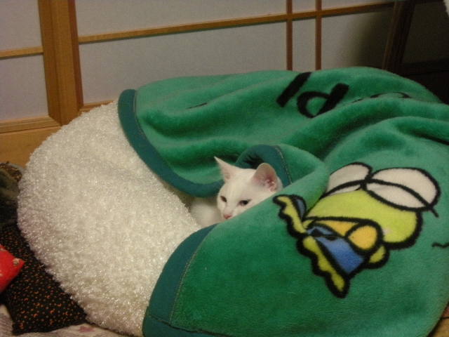 そんなものつけなくても、こたつに肩まで入っていれば暖かいのに