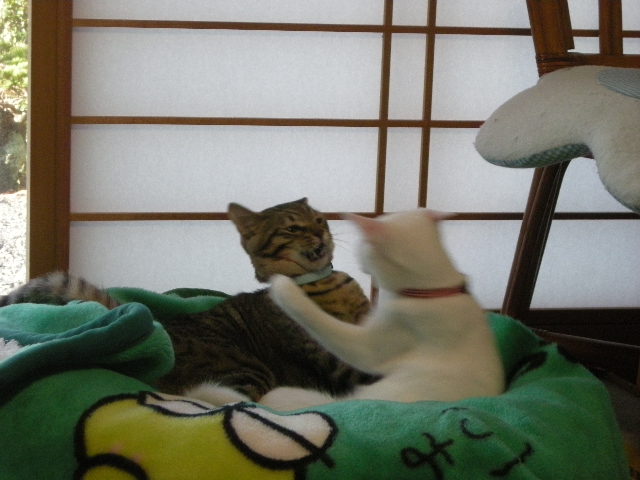音がいやだったのか、変な臭いがしたのか、モカ隊長がしばらく抗議の声を上げていました。