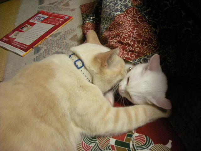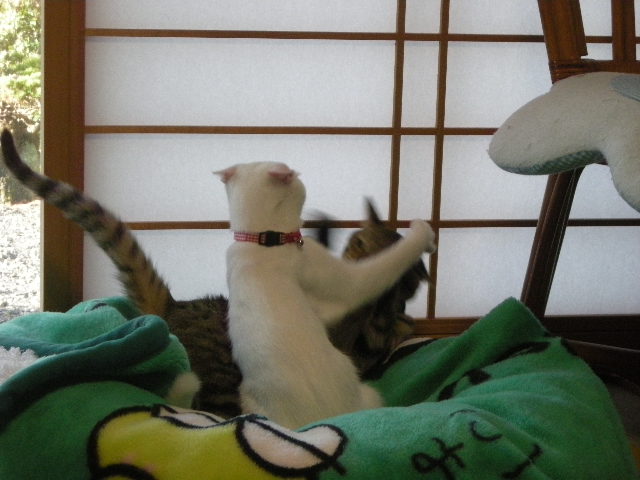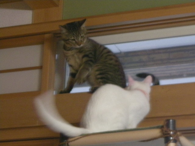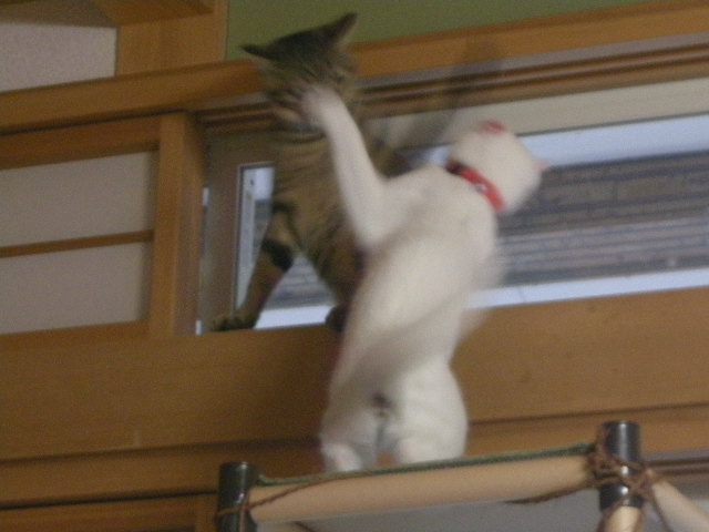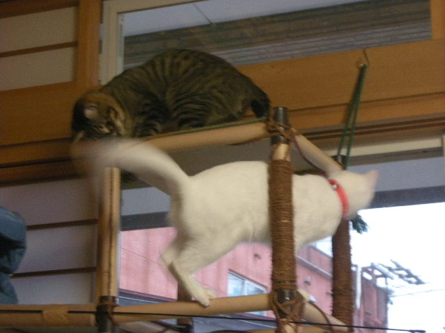 そんな狭いところでじゃれなくても、と思うのは人間だけ?