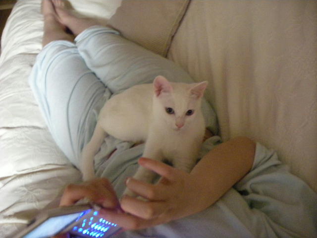 器量は今ひとつですが、お膝大好きのかわいらしい性格の猫です。