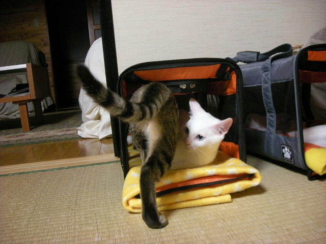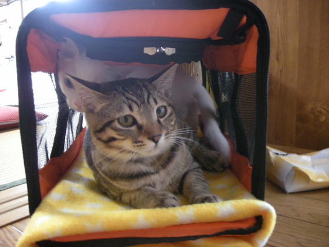 今日はキャリアバックに入れるのに、おやつで釣ってしまいました。えへっ。