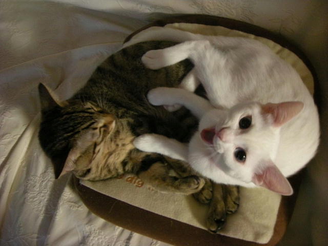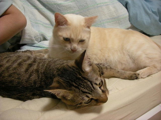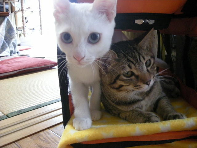 アクアと兄妹。アクアをもらう際、モカがあまりに手がかからなかったため、もう一匹くらいもらっても大丈夫だろうと一緒にもらわれてきた。