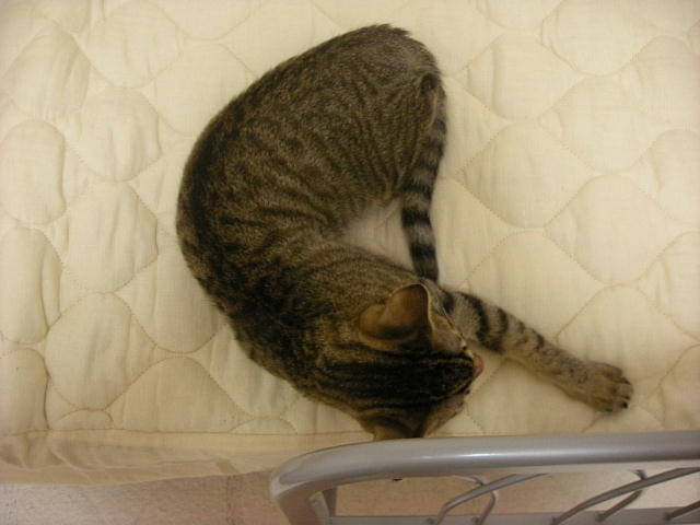 泥だらけで保護され、3歳にして去勢手術を受ける。飼い猫の経験があるのか、どれくらい野良猫だったのか、過去は一切不明。