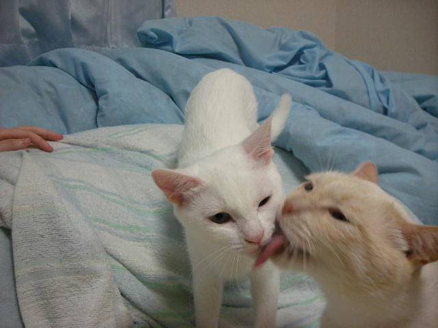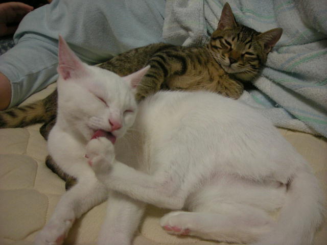 白い猫は汚れが目立ちますから、よく毛繕いをしてもらうといいんですが、