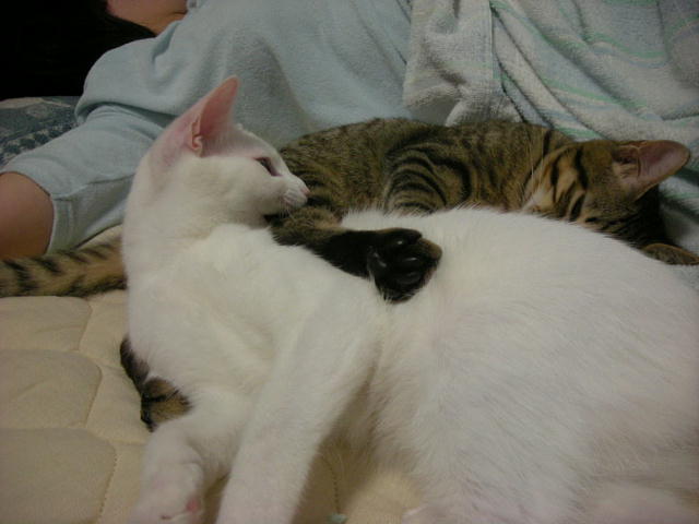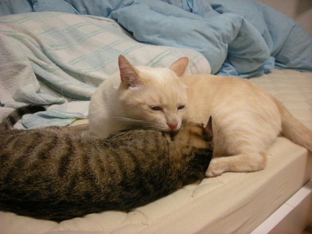モカも何もそこまで一生懸命やらなくてもと思うほど、必死で毛繕いをしてあげてます。