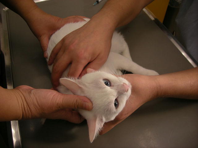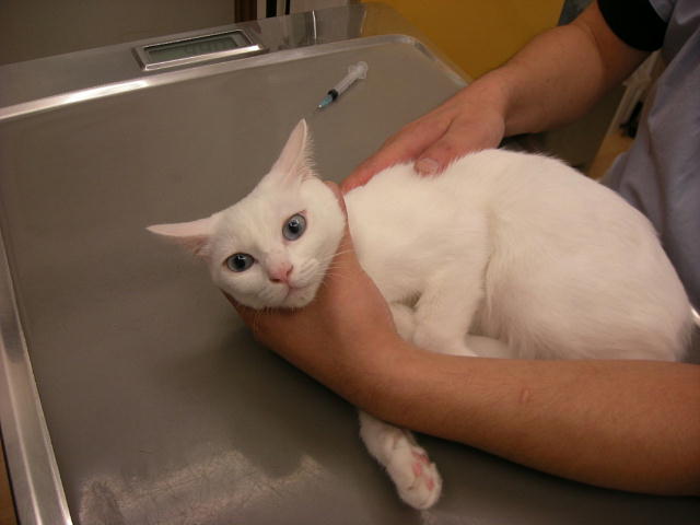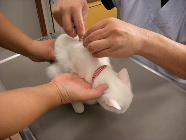 痛いです。他の猫ちゃん達は泣くわ暴れるわ。