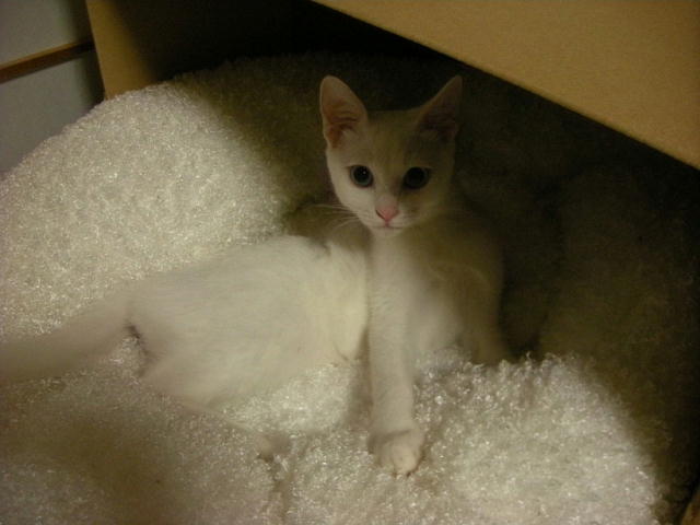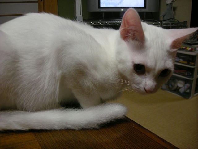 泥だらけで保護され、3歳にして去勢手術を受ける。飼い猫の経験があるのか、どれくらい野良猫だったのか、過去は一切不明。