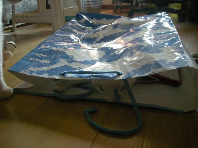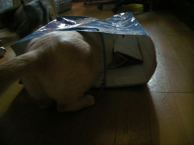 スーパーの袋越しにがりがりやっていたところを取り上げられたらしい。