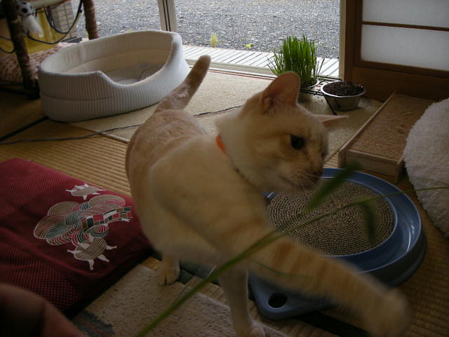 さて、お散歩の途中で取ってきた猫じゃらし。