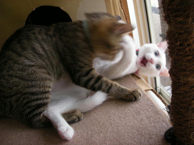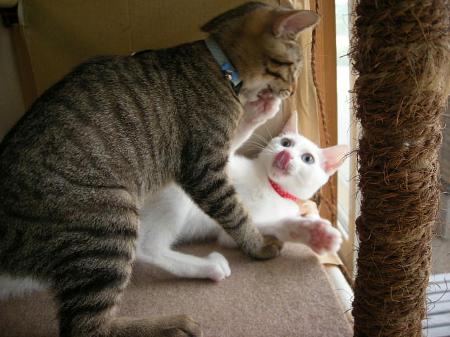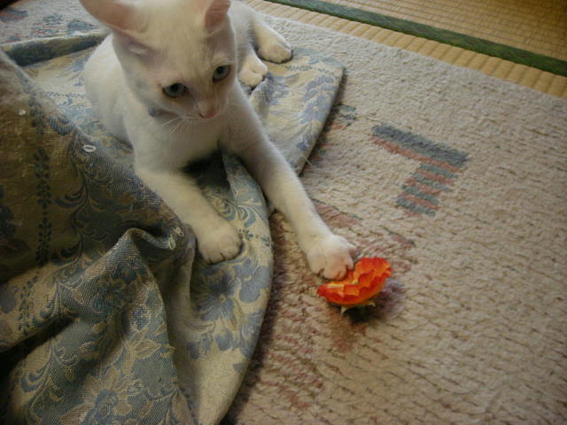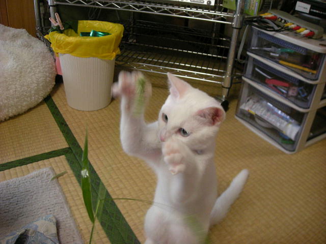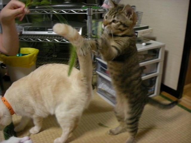 世間が運動会の季節なら、我が家の猫たちの運動にも最適の気候。