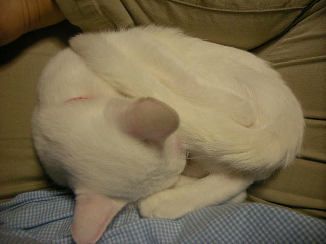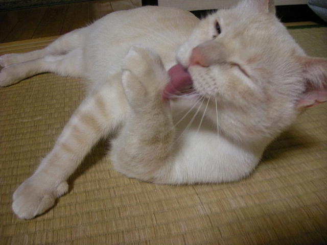 泥だらけで保護され、3歳にして去勢手術を受ける。飼い猫の経験があるのか、どれくらい野良猫だったのか、過去は一切不明。