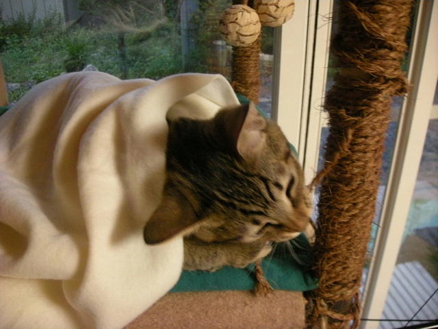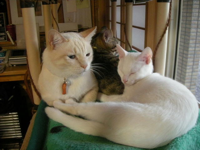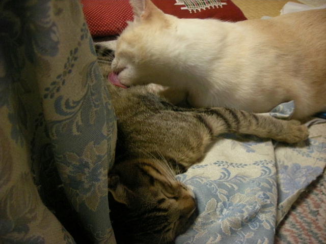 夜中、猫たちにかぶり布団の上で眠られてしまうと、朝方肩が寒くて目が覚めても、お布団をかぶり治すことができないことがあります。