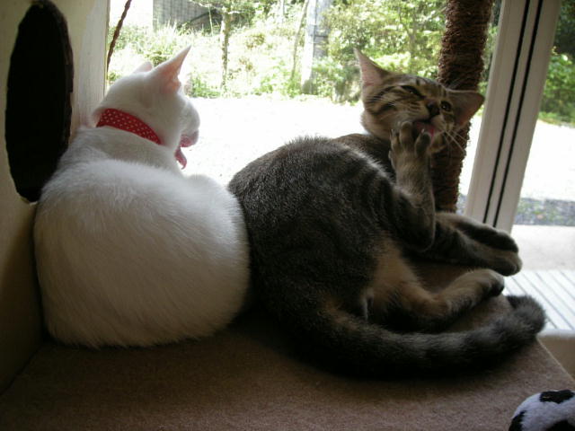 猫たちも秋の気配を感じながら、窓辺でくつろいでいます。