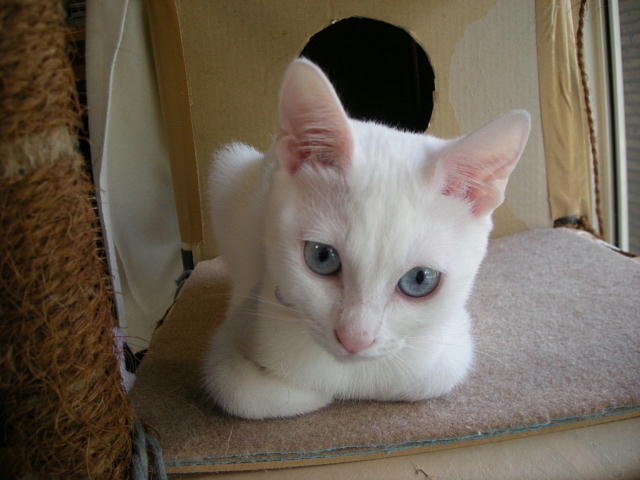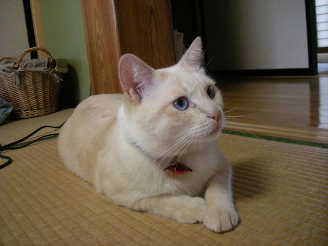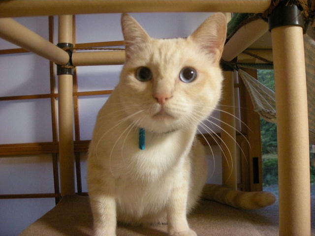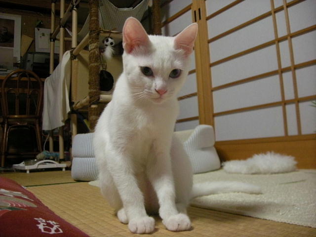 オークと兄妹。いつか白で碧眼の子をと願っていた娘が里親募集のサイトで見つけた子。うちに来たときには真っ白だったが、麿眉が発現。