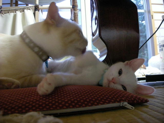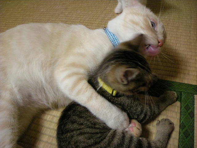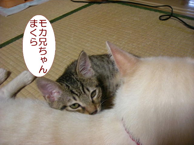 2ひきともモカ兄ちゃんから離れません。