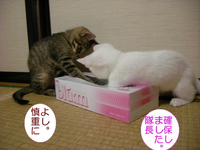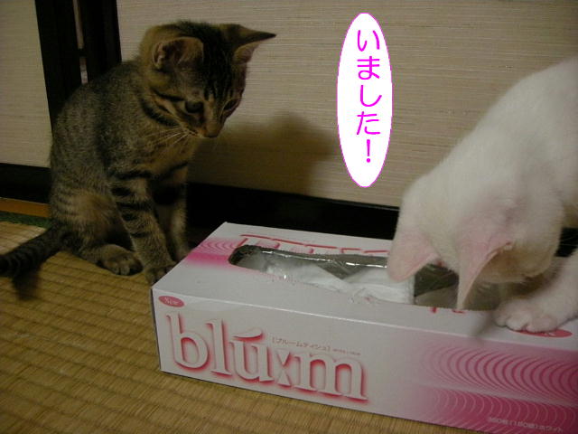 何を真剣にやっているのかと思ったら、後でティッシュの箱からネズミのおもちゃが出てきました。
