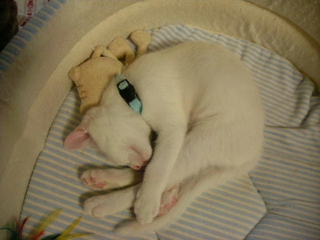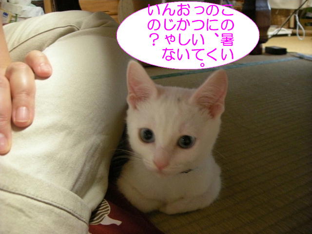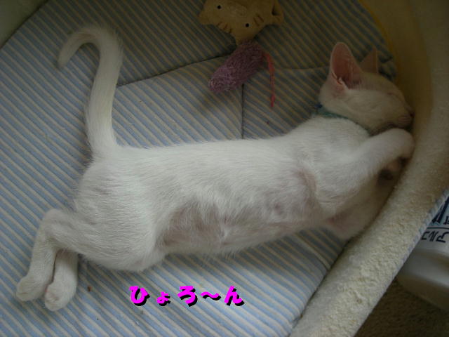さてさて、アクアちゃん、どんな格好をしても何とか猫に見えるようになってきました。3週間でずいぶんおおきくなったんですね。