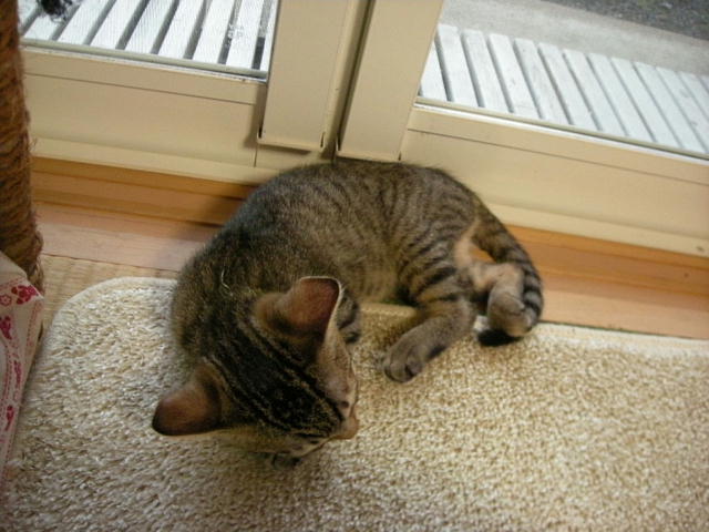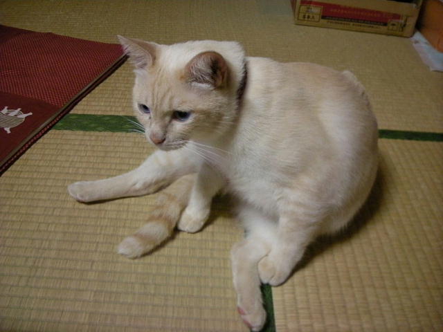 泥だらけで保護され、3歳にして去勢手術を受ける。飼い猫の経験があるのか、どれくらい野良猫だったのか、過去は一切不明。