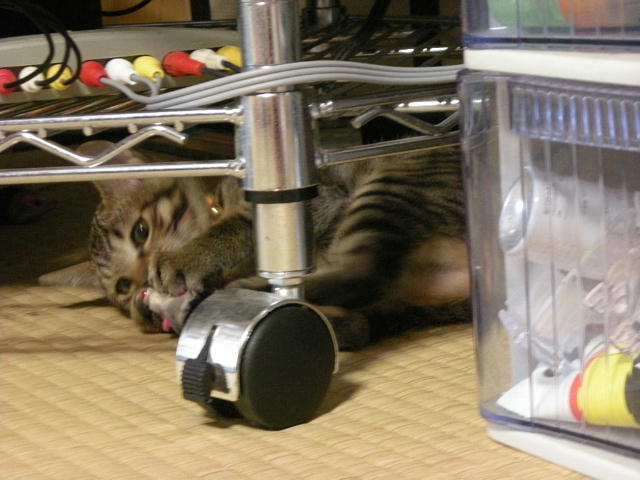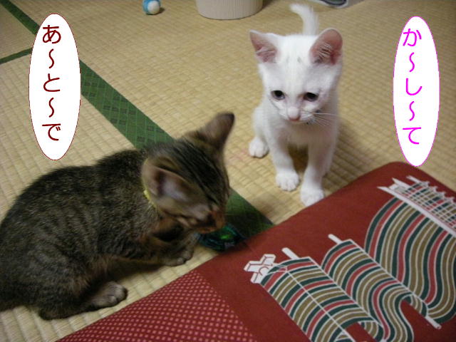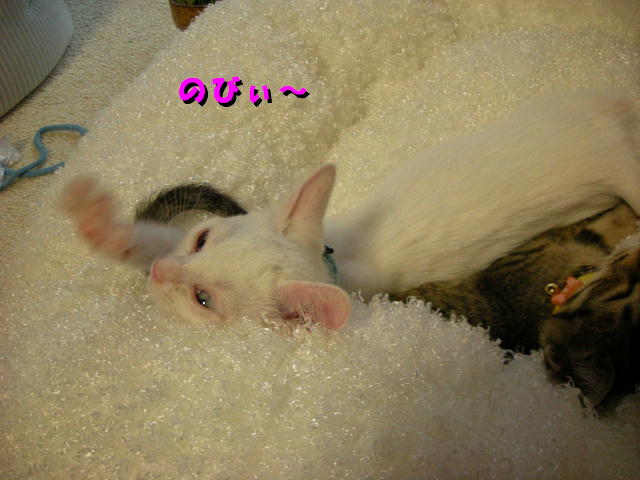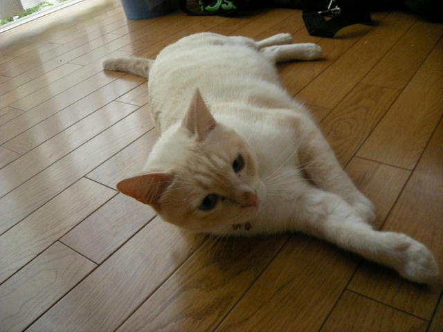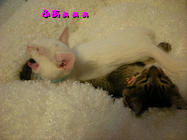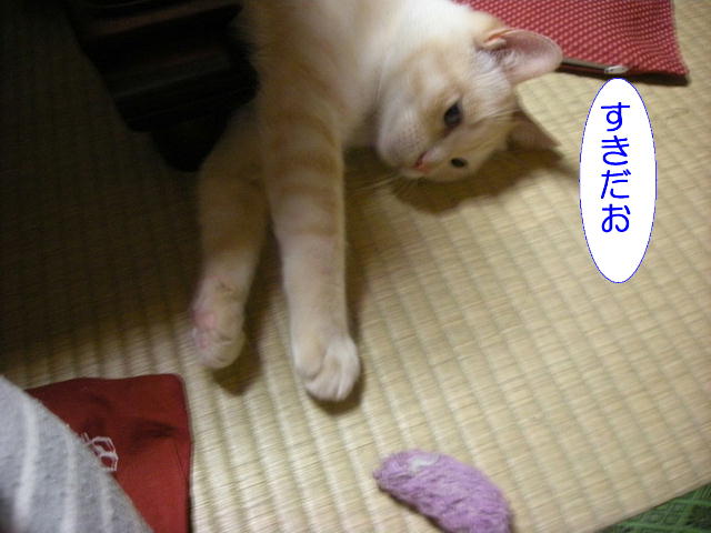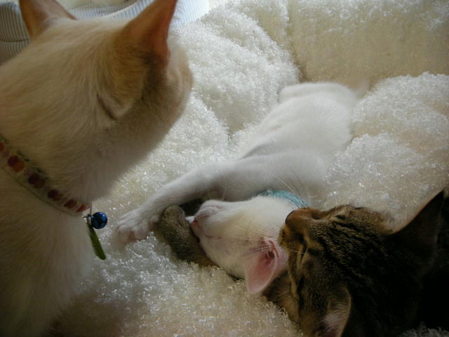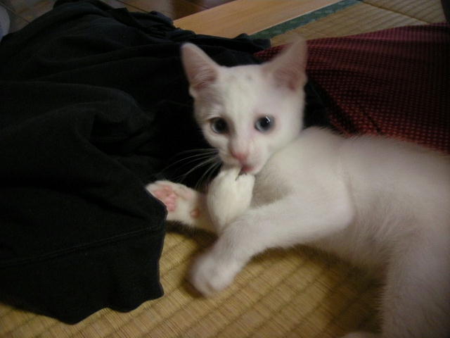 アクアも平気でひざに乗りあがったり、ジャージのひもにじゃれたりしています。
