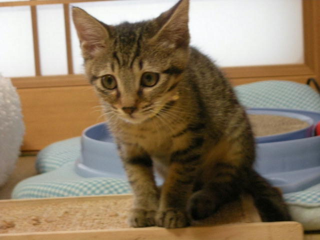 泥だらけで保護され、3歳にして去勢手術を受ける。飼い猫の経験があるのか、どれくらい野良猫だったのか、過去は一切不明。
