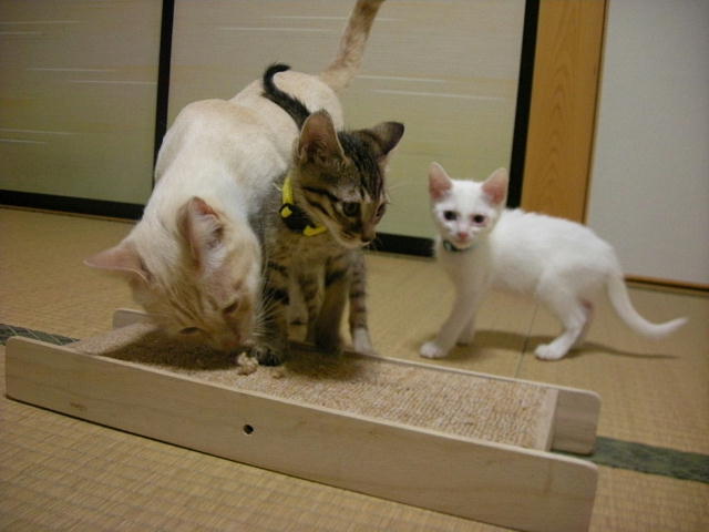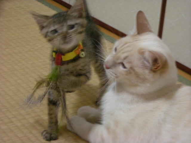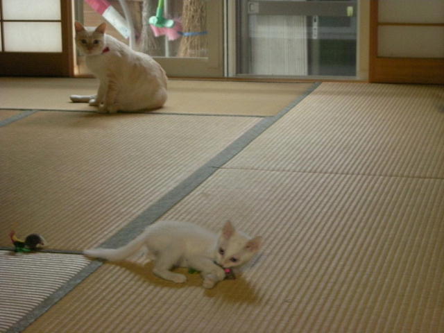 午前中は駆け回ってめいっぱい遊んでいました。モカも一緒になって駆け回ってどたどたにぎやか。