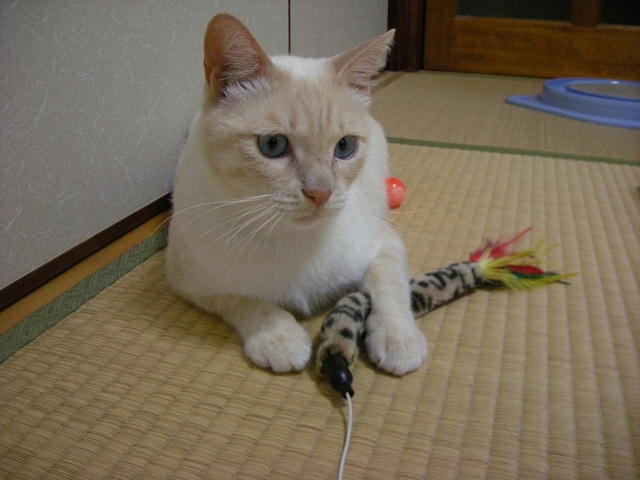 オークと兄妹。いつか白で碧眼の子をと願っていた娘が里親募集のサイトで見つけた子。うちに来たときには真っ白だったが、麿眉が発現。