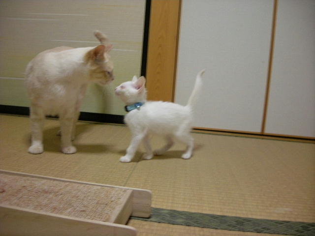 じっと見守っているモカを怖くないと判断したようで、ご挨拶。