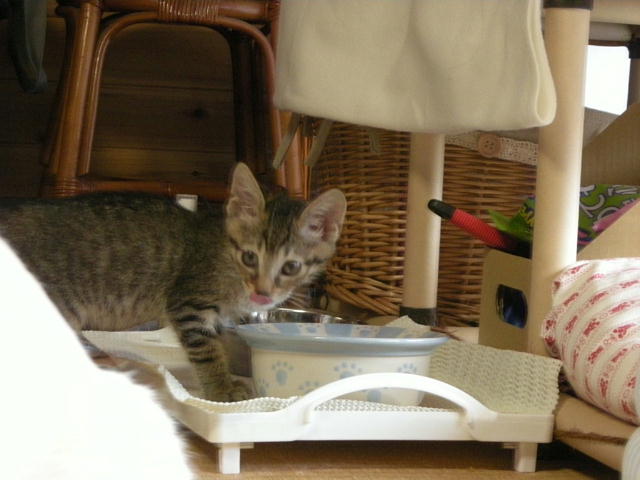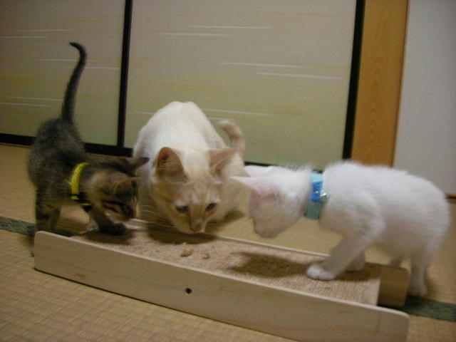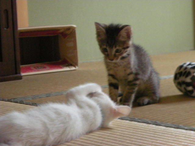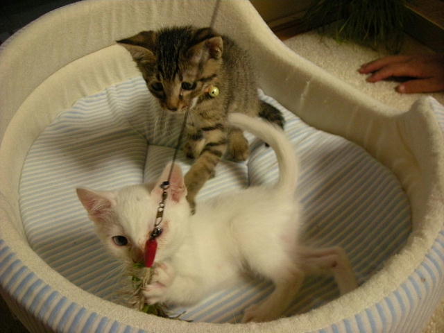 というか、狭いゲージのなかで大暴れしては、ご飯やお水に足をつっこんでいる子猫たちがつい不憫で……
