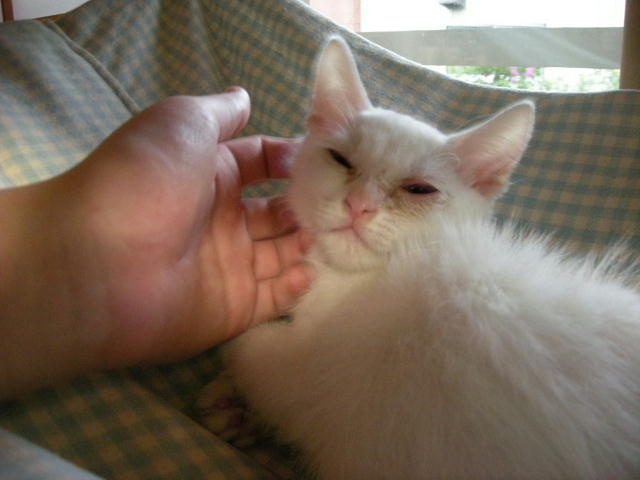 泥だらけで保護され、3歳にして去勢手術を受ける。飼い猫の経験があるのか、どれくらい野良猫だったのか、過去は一切不明。