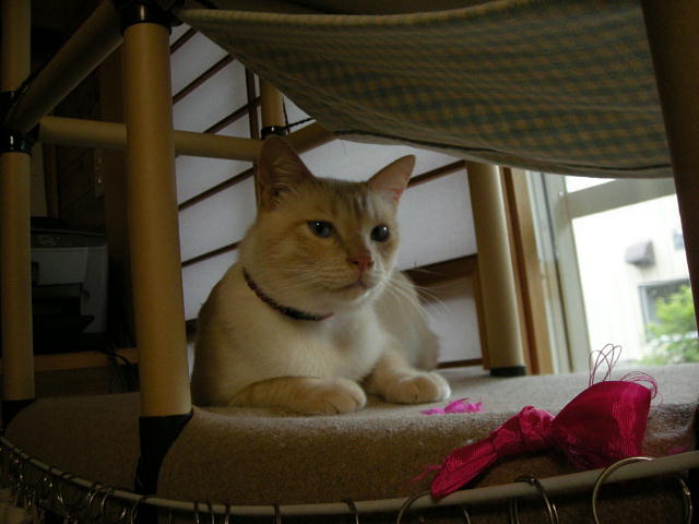 隠れ家に逃げ込んでも、ちゃんといたずらをするアクアちゃん。