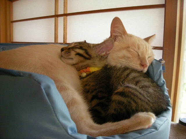 アクアと兄妹。アクアをもらう際、モカがあまりに手がかからなかったため、もう一匹くらいもらっても大丈夫だろうと一緒にもらわれてきた。