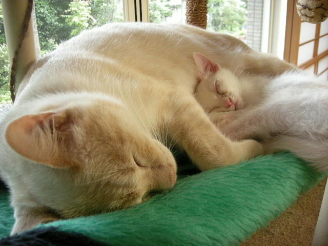 モカに風邪がうつったようで少しだるそうにしています。明日は、一緒にお医者さんに連れて行くつもりです。