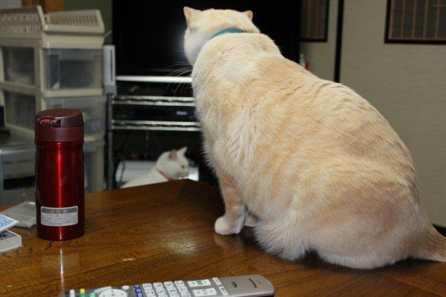 モカが食べている横で、オークがモカのおこぼれをねらっております。
