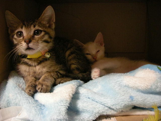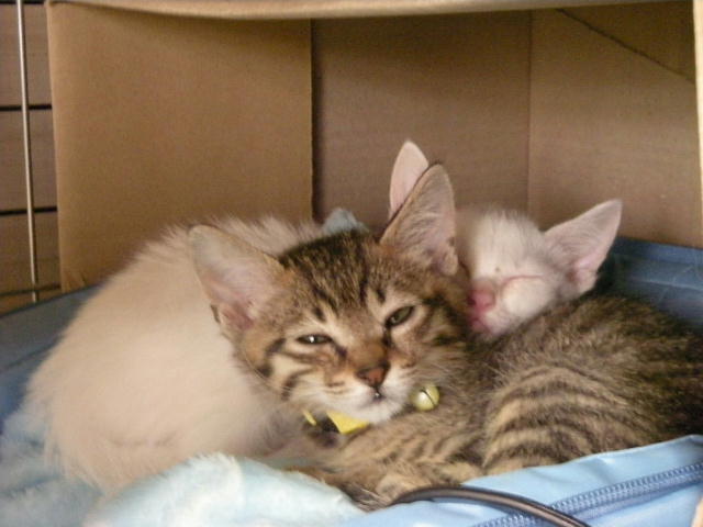 仔猫たち、くしゃみが続いています。かにさんにメールしてアドバイスをいただき、ヒーターを入れてみたんですが。