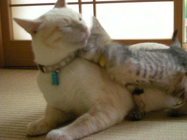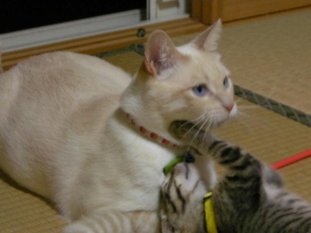 これだけ仲良しさんだと、一緒に遊ばせてモカも一緒に駆虫すればいいかななんて……モカは……検便したことないなあ。考えてみたら。