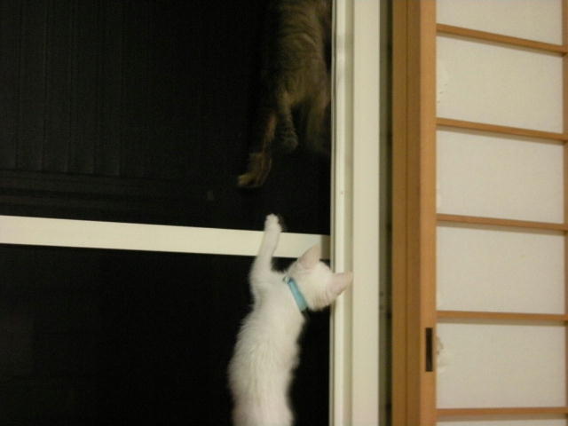 お約束の網戸登り、そしてマニュアル通りに降りられなくなりました。