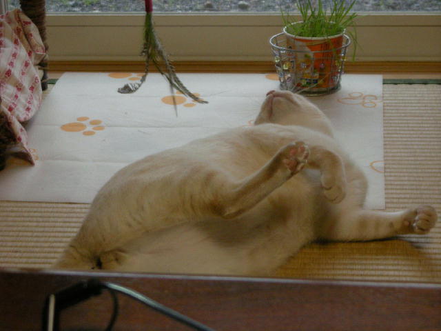 泥だらけで保護され、3歳にして去勢手術を受ける。飼い猫の経験があるのか、どれくらい野良猫だったのか、過去は一切不明。