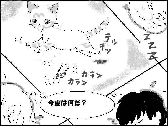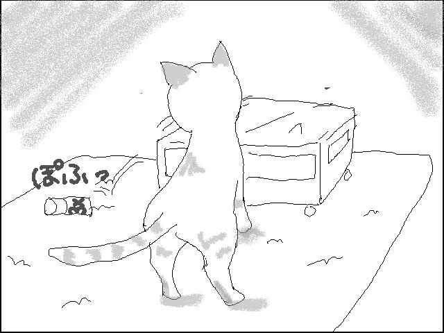 紙袋は、モカの方に入り口を向けて、そこの方をカリカリと爪でこすると飛び込んでくる。何もないと出てきてしまうので、モカが入った袋を外側から軽くはじいてやると、喜んで遊ぶ。