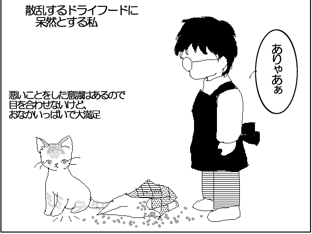 モカちゃん最初のいたずらは、ドライフードの袋の食いちぎりです。