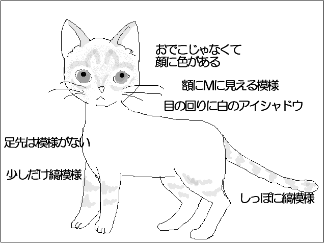 さて、イラストにするようになってモカをよくよく観察したら、模様が全然違っていたことに今更気づきました。
