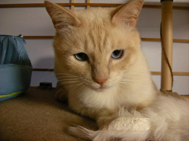 泥だらけで保護され、3歳にして去勢手術を受ける。飼い猫の経験があるのか、どれくらい野良猫だったのか、過去は一切不明。