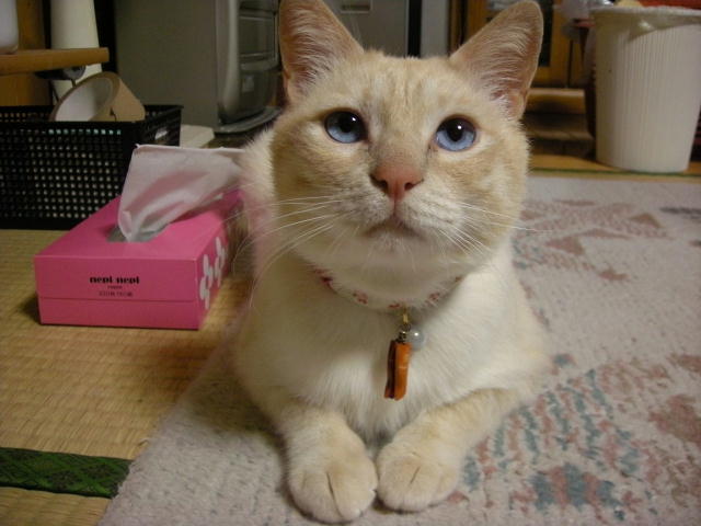 今日は寒かったので、こたつの温度も高めです。こたつでくつろいだ後、のぼせて出てきたモカちゃんです。