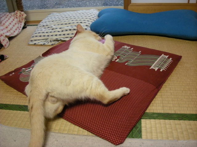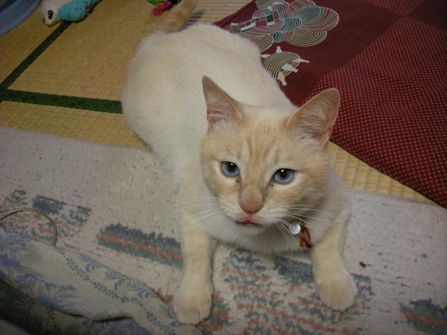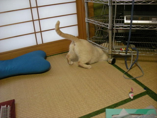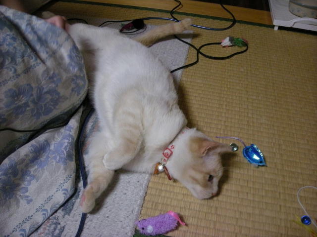 寒かったので、今日は窓を開けてもらえなかったモカちゃん。そばで甘えた声を出していましたので、ちょっと遊んであげました。