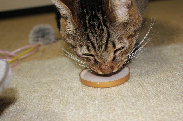 お薬が苦いらしく、飲んだ後泡を吹いていたので、ミルクでも飲めば、お口さっぱりになるかなあなんて思ったのですが、どうも初めてのものには警戒心を抱いたらしく、モカは見向きもしません。