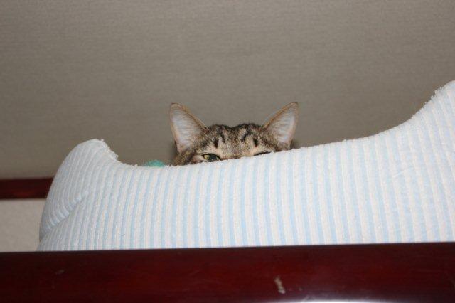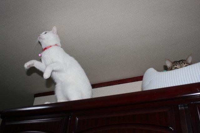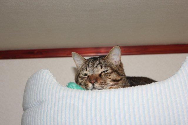 洋服ダンスの上がお気に入りのオークのために、ずいぶん前に置いてあげたベッド。