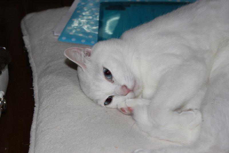 他のクッションがあっても、必ず白いクッションに座る。