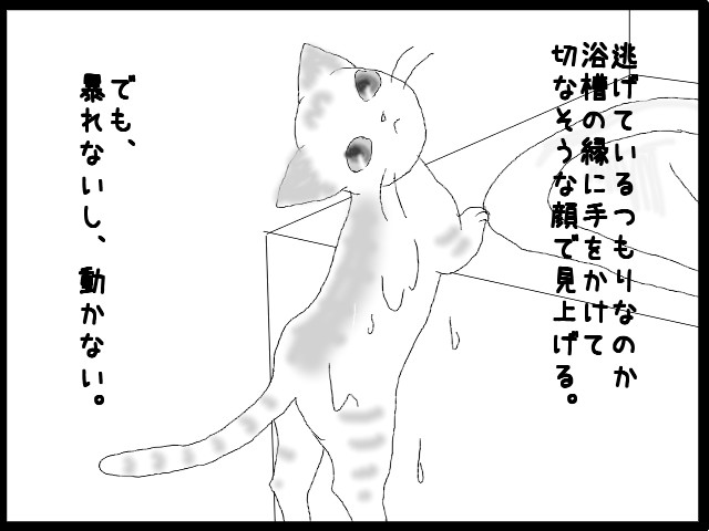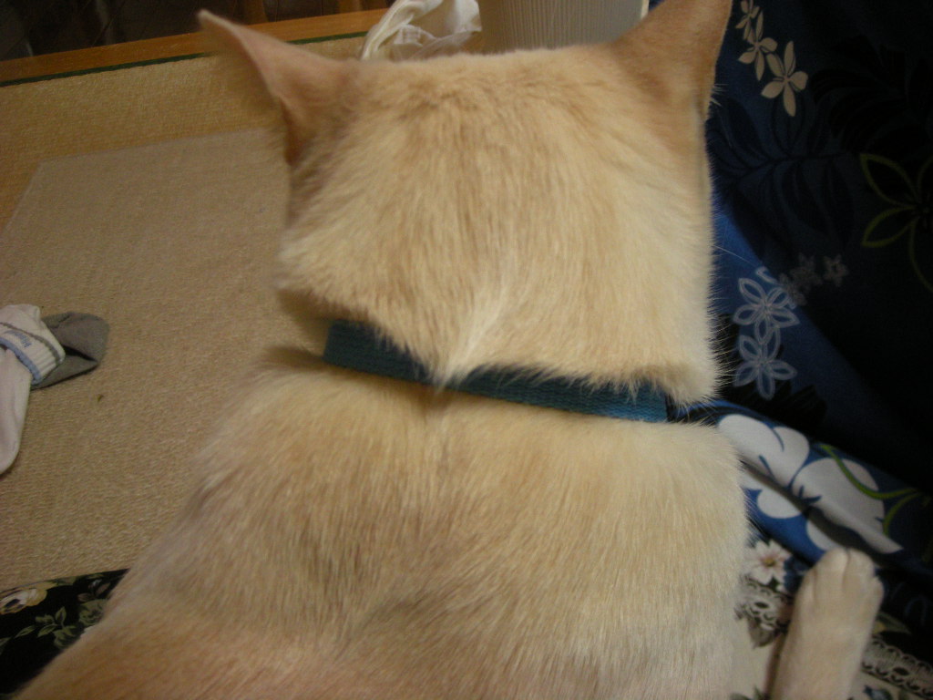 泥だらけで保護され、3歳にして去勢手術を受ける。飼い猫の経験があるのか、どれくらい野良猫だったのか、過去は一切不明。