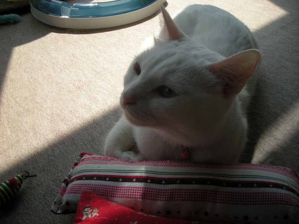 オークと兄妹。いつか白で碧眼の子をと願っていた娘が里親募集のサイトで見つけた子。うちに来たときには真っ白だったが、麿眉が発現。