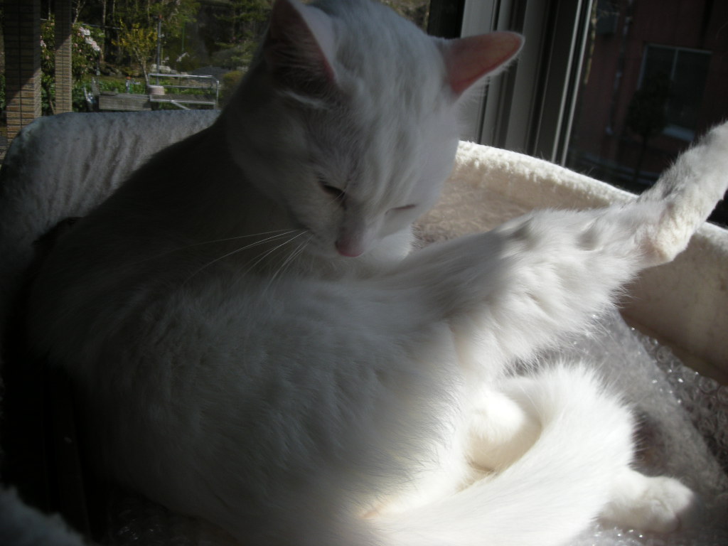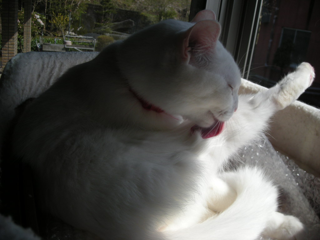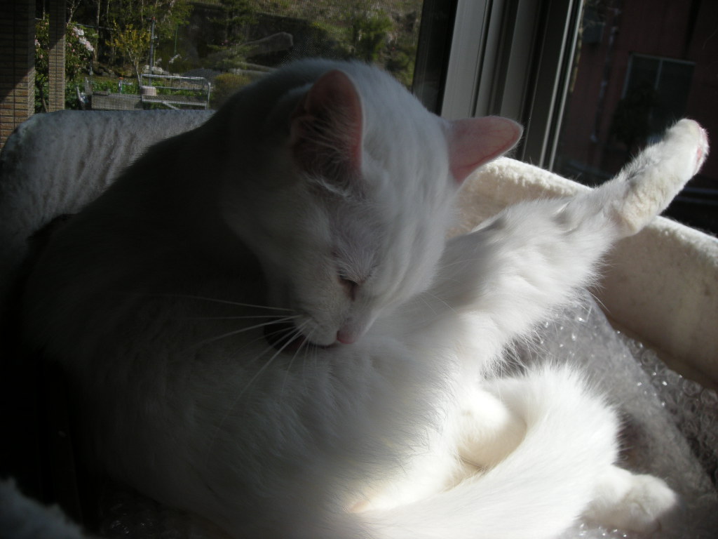そうはいっても、この時期大量に毛が抜けるし、真っ白なアクアはだんだん黄ばんでくるんだもの。